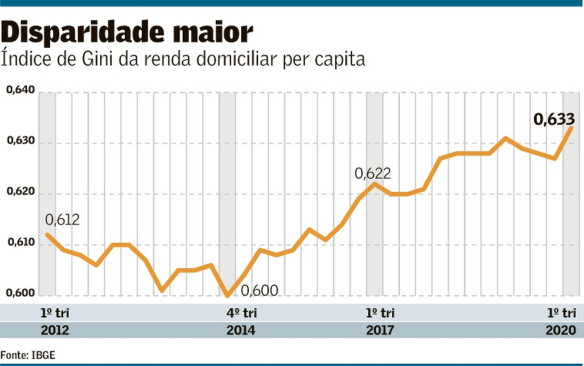 De se notar, também, como o Índice de Gini comporta-se negativamente na crise – quanto mais próximo de um, mais desigual a sociedade avaliada. Seu aumento desde 2014 corresponde ao ciclo econômico negativo que vem desde 2014, como resumimos ontem a aula magna de Nilson Araujo de Souza.