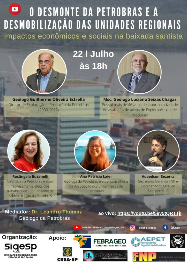 *Guilherme Estrella é geólogo e foi Diretor de Exploração e Produção da Petrobras de 2003 a 2010; Luciano Seixas Chagas é geólogo, com 46 anos de experiência na Petrobras; Adaedson Bezerra da Costa é coordenador-geral do Sindipetro Litoral Paulista e Secretário-geral da Frente Nacional dos Petroleiros.