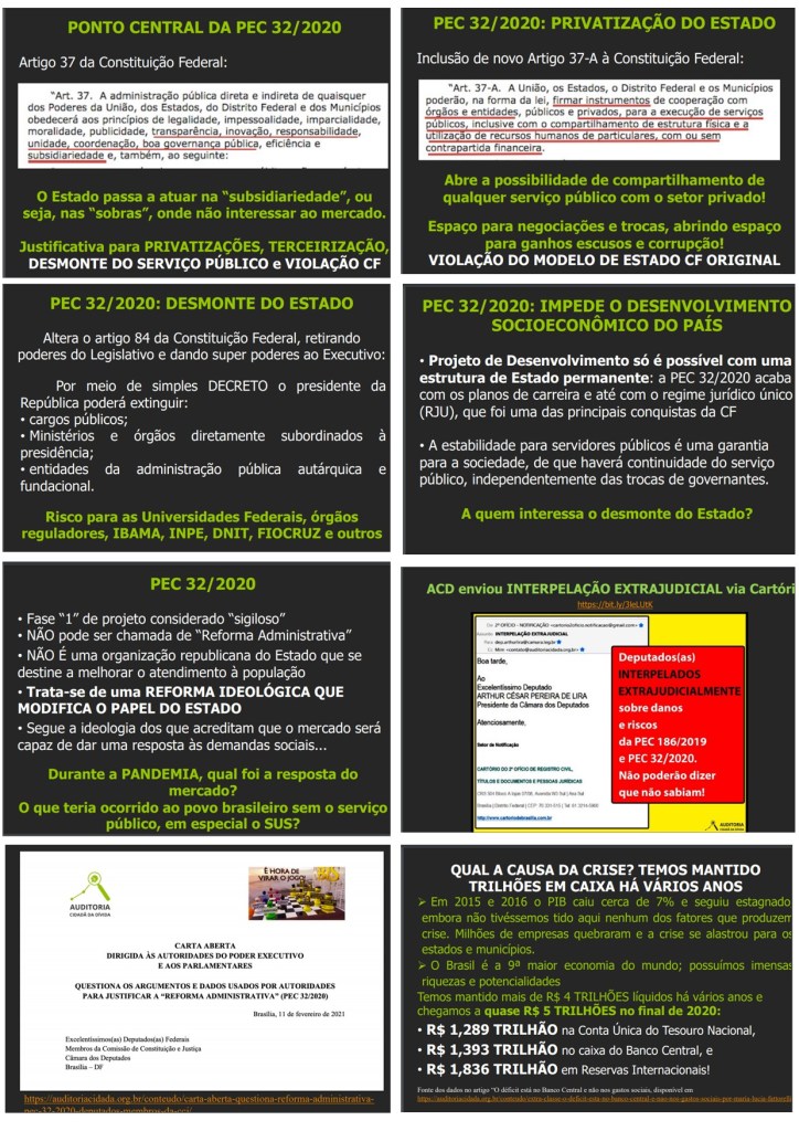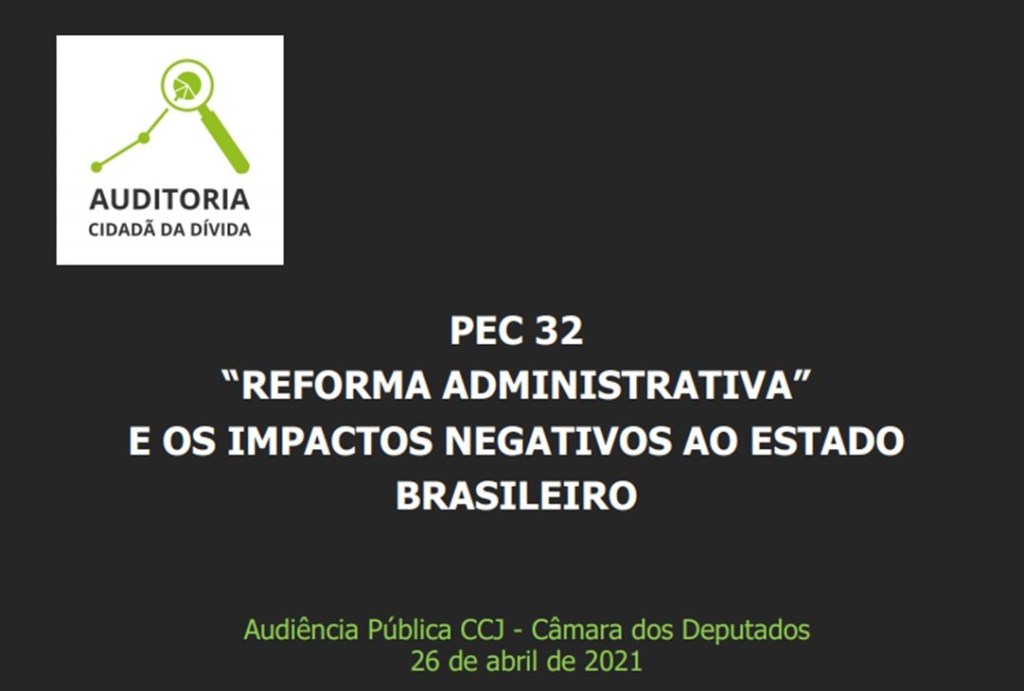 Nenhum dos 513 Deputados Federais pode alegar desconhecimento dos malefícios da Reforma Administrativa após a audiência pública protagonizada por Maria Lúcia Fatorelli, titular da Auditoria Cidadã da Dívida, cuja íntegra abaixo se dispõe.