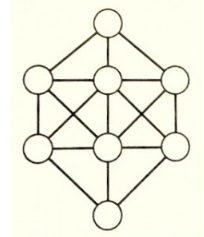 Distribua os números naturais de 1 a 8 nos círculos indicados na figura, de maneira tal que não haja nenhum par de números consecutivos unidos por um segmento.