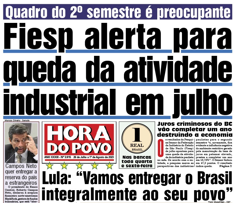 Os resultados da Pesquisa Sensor da Federação da Indústria do Estado de São Paulo (Fiesp) de julho apontam para uma queda da atividade da indústria paulista no mês. De acordo com a entidade, a pesquisa marca as perspectivas das indústrias paulistas para o segundo semestre “e, novamente, fica evidente a influência negativa do ambiente restritivo gerado pela manutenção da taxa de juros em patamar elevado, prestes a completar um ano em 13,75%”. O Sensor fechou em 47,2 pontos. A pesquisa considera que resultados abaixo dos 50,0 pontos indicam queda da atividade e levam em conta o tratamento sazonal. Veja a matéria completa.