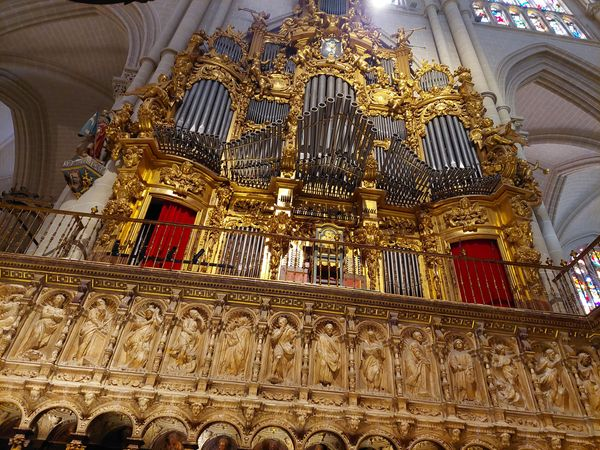 A Catedral Primaz de Toledo tardou 300 anos para ser erguida e tem em dua decoração peças de ouro trazidas das Américas. Alguns de seus cardeais estão enterrados na nave e sob o teto que encima as lápides fica pendurado o respectivo chapéu. Muitas capelas ornam as laterais, construídas por famílias ricas que lhes dão nome.