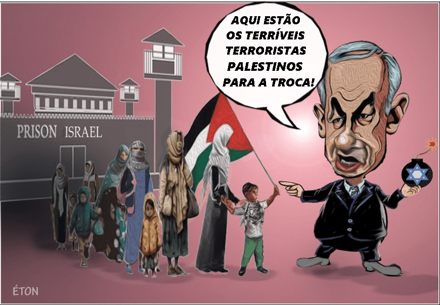Uma multidão recebeu as mulheres, crianças e adolescentes palestinos com buzinaço, agitar de bandeiras, e fogos de artifício, em sua chegada de ônibus ao centro da cidade de Beitunia, após sua soltura da prisão de Ofer que fica na mesma cidade. Veja a cobertura.