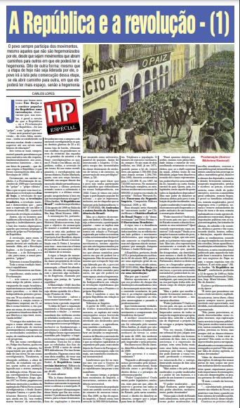 Toda a nossa tradição histórica é republicana. Como demonstrou um famoso republicano, ainda antes da Proclamação: “… nós somos o partido mais antigo da pátria; somos a vanguarda da nação brasileira, representamos as suas tradições mais queridas; — a ideia da Independência primeiro germinou em 79 no cérebro do nosso Tiradentes; a reação contra o despotismo imperial, em 31, se filia à nossa história; e, em que pese aos maus, de nós surgiram os primeiros lutadores desse 88, que libertou a raça irmã, escravizada infeliz! Leia a história toda.