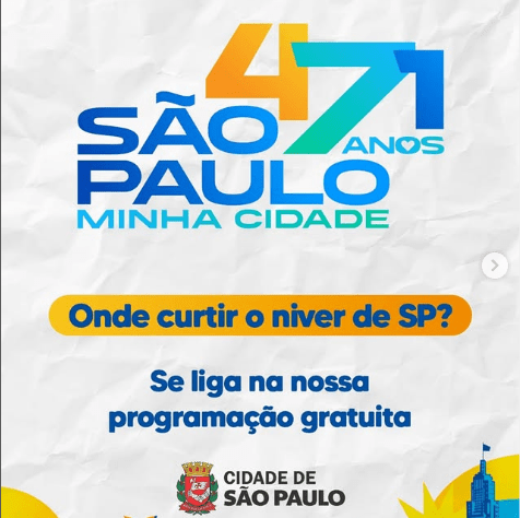 Atividades para o aniversário de São Paulo 471: caça-palavras, histórias da cidade, Rita Lee 2004, Demônios da Garoa 2025 e programação gratuita