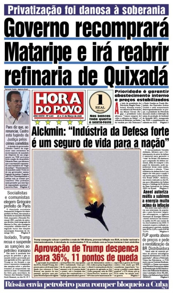 O presidente Lula tem manifestado preocupação em evitar que a explosão dos preços do petróleo a nível internacional, fruto da agressão dos EUA e Israel ao Irã, prejudiquem a economia brasileira. Neste sentido ele fez o anúncio da liberação de R$ 9 bilhões em investimentos na ampliação da produção de derivados na refinaria Gabriel Passos, em Minas Gerais. Além disso, o governo zerou os impostos federais, PIS e Cofins, sobre o diesel e taxou as exportações de petróleo. O presidente afirmou também que a Petrobrás irá recomprar a refinaria de Mataripe, na Bahia, que foi vendida por Jair Bolsonaro e Paulo Guedes ao Fundo Mubadala, dos Emirados Árabes Unidos. Confira o plano energético brasileiro.