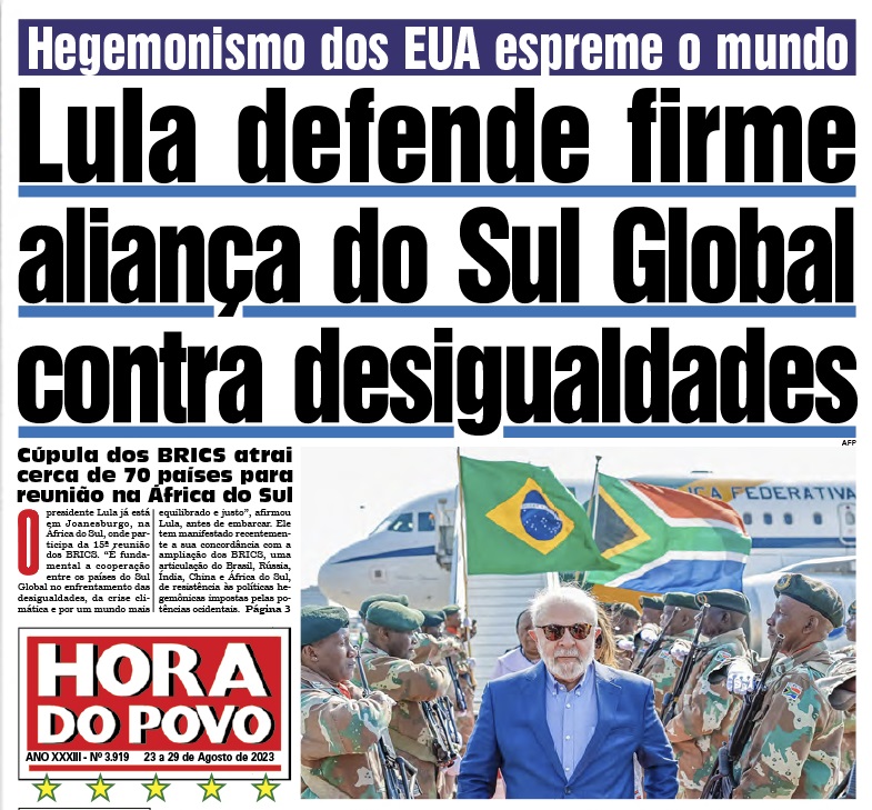 Toda a verdade em 8 páginas O presidente Lula já desembarcou em Joanesburgo, na África do Sul, onde irá participar da 15ª reunião dos BRICS (Brasil, Rússia, Índia, China e África do Sul). A organização discutirá a nova conformação geopolítica mundial e a sua ampliação. O bloco econômico formado atualmente por Rússia, Índia, China eContinuar lendo “Hora do Povo – Edição nº 3.919”